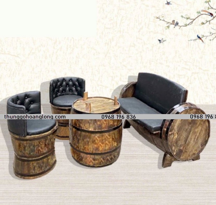Bàn ghế gỗ trang trí bọc da