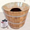 Bồn tắm xông hơi gỗ Thông dáng Oval được chế tác tỉ mỉ từ những thanh gỗ Thông nhập khẩu chất lượng cao. Dáng oval độc đáo, mềm mại, kết hợp với màu vàng gỗ tự nhiên cùng những vân gỗ tinh tế, tạo nên vẻ đẹp sang trọng, hài hòa với mọi không gian phòng tắm. Kích thước bồn tắm (Dài 125cm – Cao 65cm – Rộng 60cm) được thiết kế phù hợp với vóc dáng người Việt, mang lại cảm giác thoải mái tối đa khi sử dụng. Phần nắp đậy kín đáo giúp giữ nhiệt hiệu quả, đồng thời tạo không gian riêng tư cho người dùng.